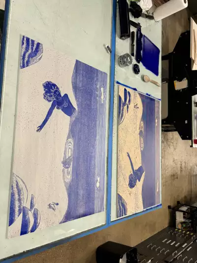 CRISTINA MAINGRETTE, La Sirene, 2024, Ink on paper-carved and hand-printed linoleum block onto mulberry paper