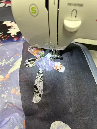 MARK FLEURIDOR, A Season of Sharing #4, 2024, Digital Collage, hand sewing and quilting, 15.5 x 15 in (CONIFIRM WITH KENDRA)