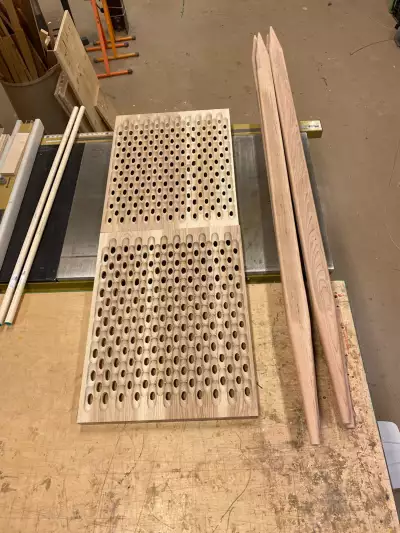 Lè m sot Ayiti reflects on the limits of reconstruction in the aftermath of migration. The installation features wooden walls that recall both the furniture and architectural terraces found across Caribbean landscapes. These self-supporting structures, drawn from personal memory, evoke the precarious and shifting nature of rebuilding a sense of home after leaving one’s homeland. Suspended from the wooden frame are two woven portraits, representing the first women in my family to migrate to Canada. This work also marks my first foray into a larger practice of combining wood and textiles in immersive installation.