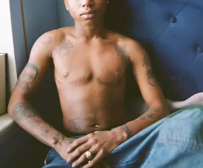 It was the first time he had his picture taken since having top surgery, which felt extremely significant. Documenting queer Haitians is crucial to the validity of my own identity, and I hoped to reflect that in the images captured and gift that to Chaos. Our relationships to Haitian identity and culture are different—Chaos is fully Haitian, while I am only half. He grew up immersed in the culture, while I did not. When we met, I was drawn to him, and now I realize it’s because he serves as a link for me to connect to everything I’m still trying to piece together within myself.